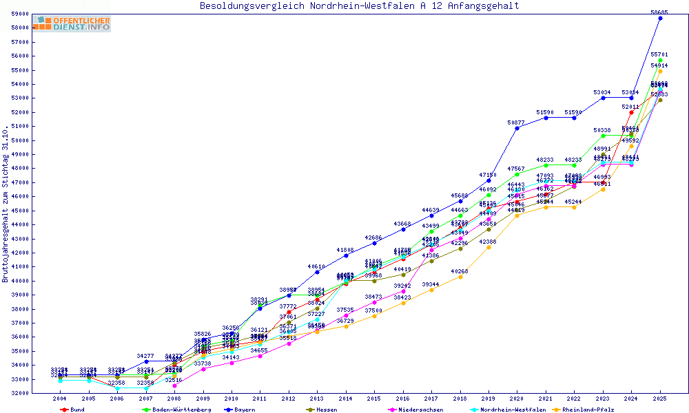 | Besoldungsvergleich A 12 im Jahr 2025 | Anfangsgehalt | ||||||