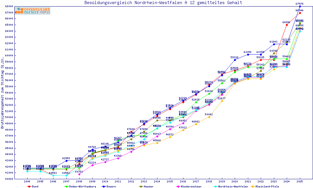 | Besoldungsvergleich A 12 im Jahr 2025 | gemitteltes Gehalt | ||||||