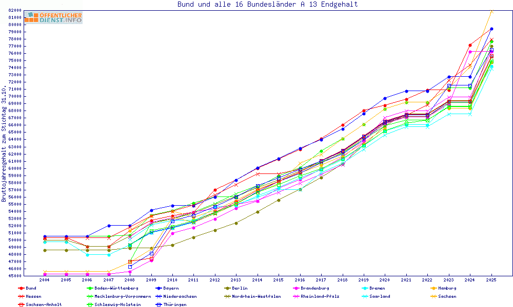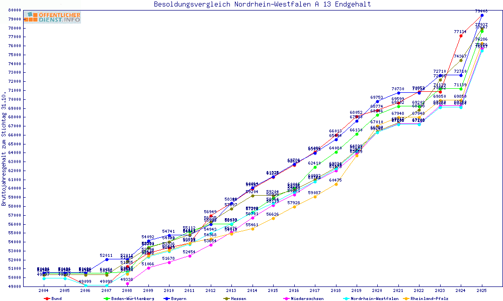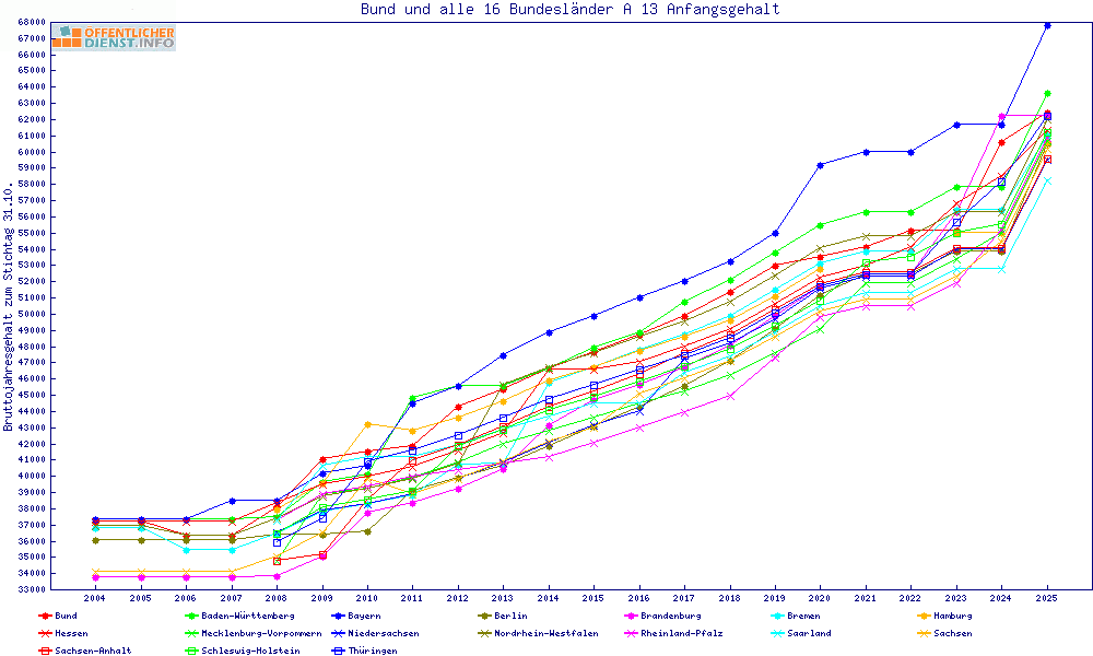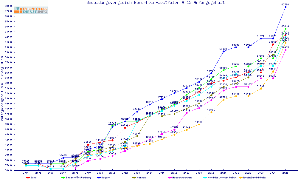| Besoldungsvergleich A 13 im Jahr 2025 | Anfangsgehalt | ||||||