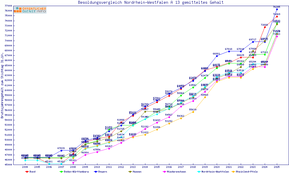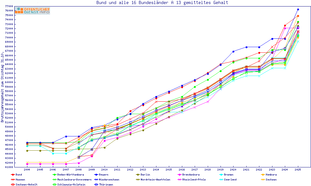 | Besoldungsvergleich A 13 im Jahr 2025 | gemitteltes Gehalt | ||||||