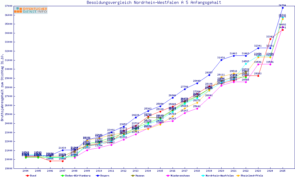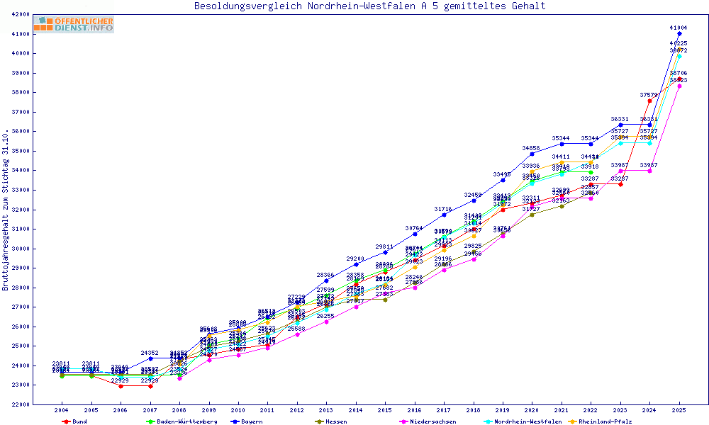 | Besoldungsvergleich A 5 im Jahr 2025 | gemitteltes Gehalt | ||||||
