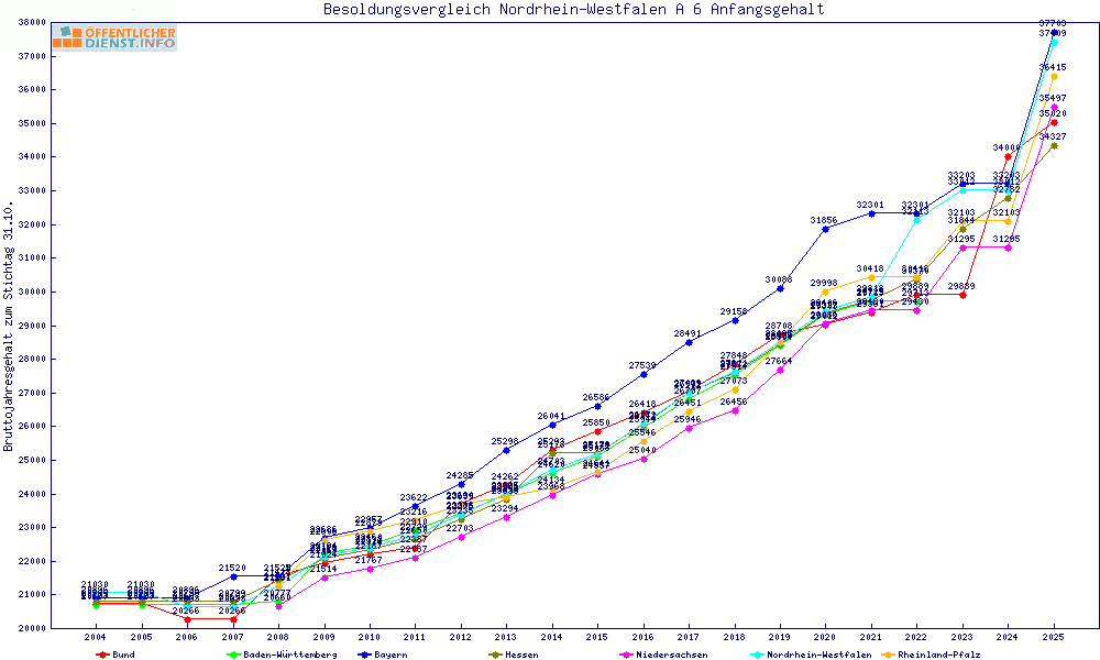| Besoldungsvergleich A 6 im Jahr 2025 | Anfangsgehalt | ||||||