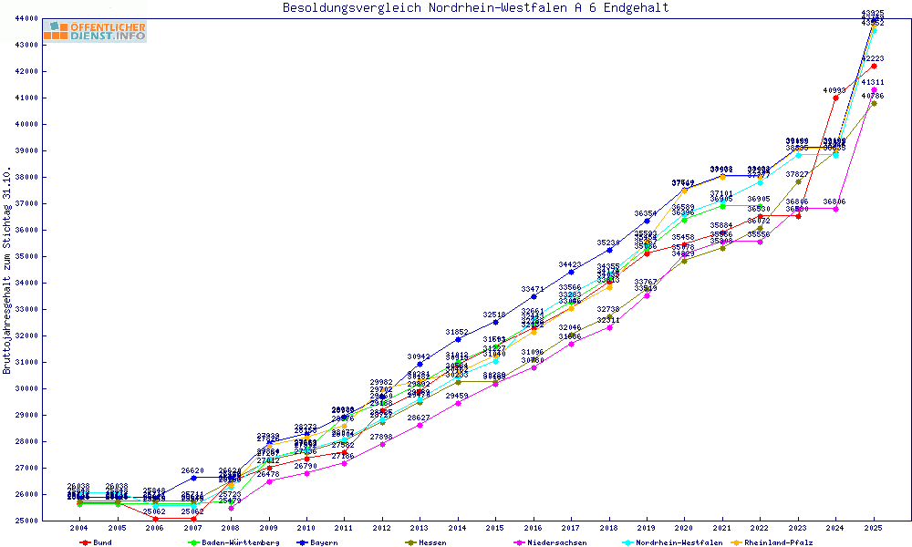 | Besoldungsvergleich A 6 im Jahr 2025 | Endgehalt | |||||||