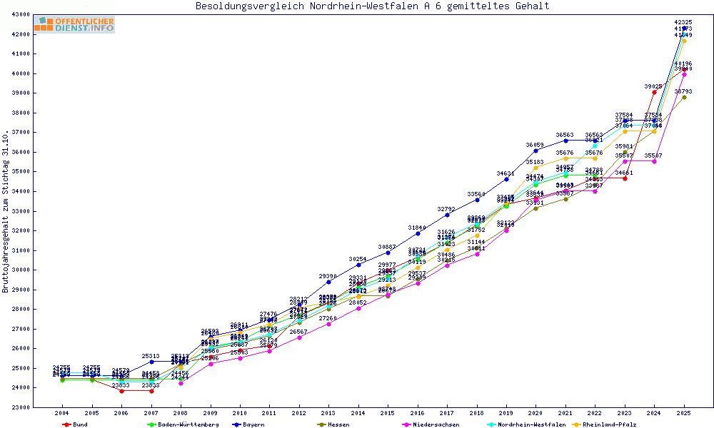 | Besoldungsvergleich A 6 im Jahr 2025 | gemitteltes Gehalt | ||||||