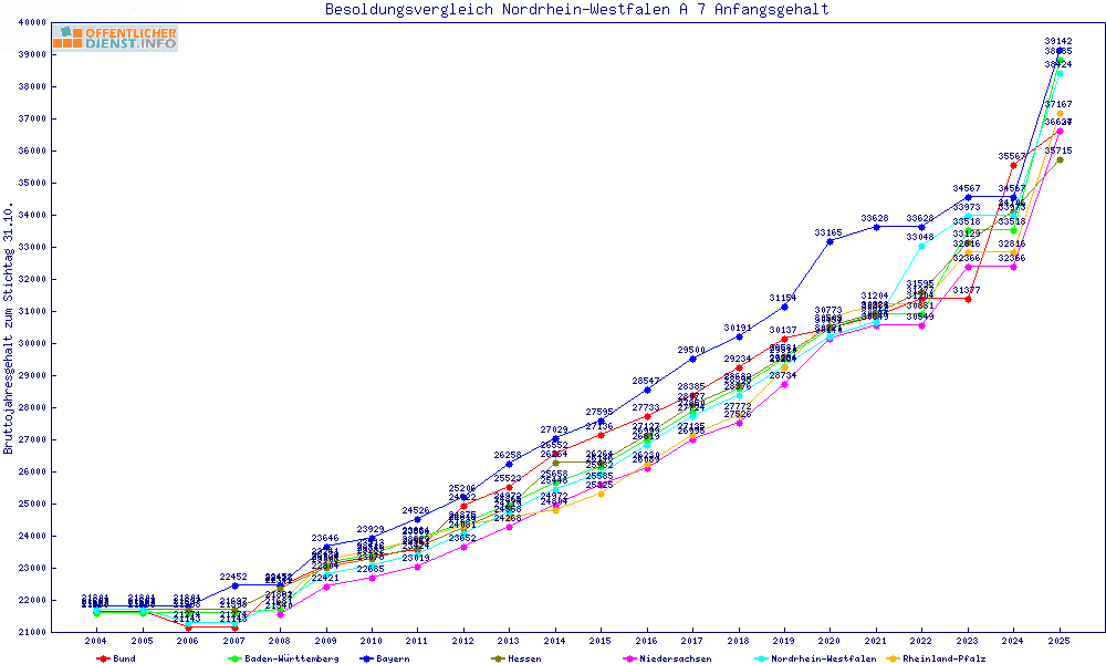 | Besoldungsvergleich A 7 im Jahr 2025 | Anfangsgehalt | ||||||