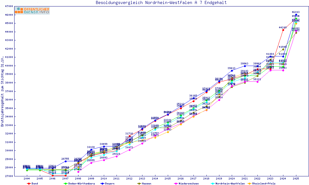 | Besoldungsvergleich A 7 im Jahr 2025 | Endgehalt | |||||||
