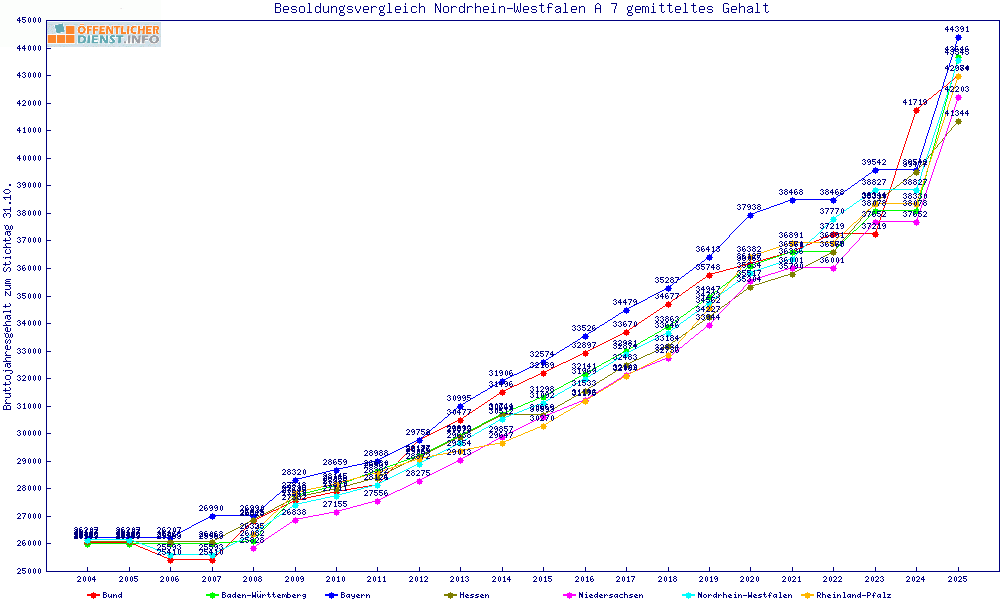 | Besoldungsvergleich A 7 im Jahr 2025 | gemitteltes Gehalt | ||||||