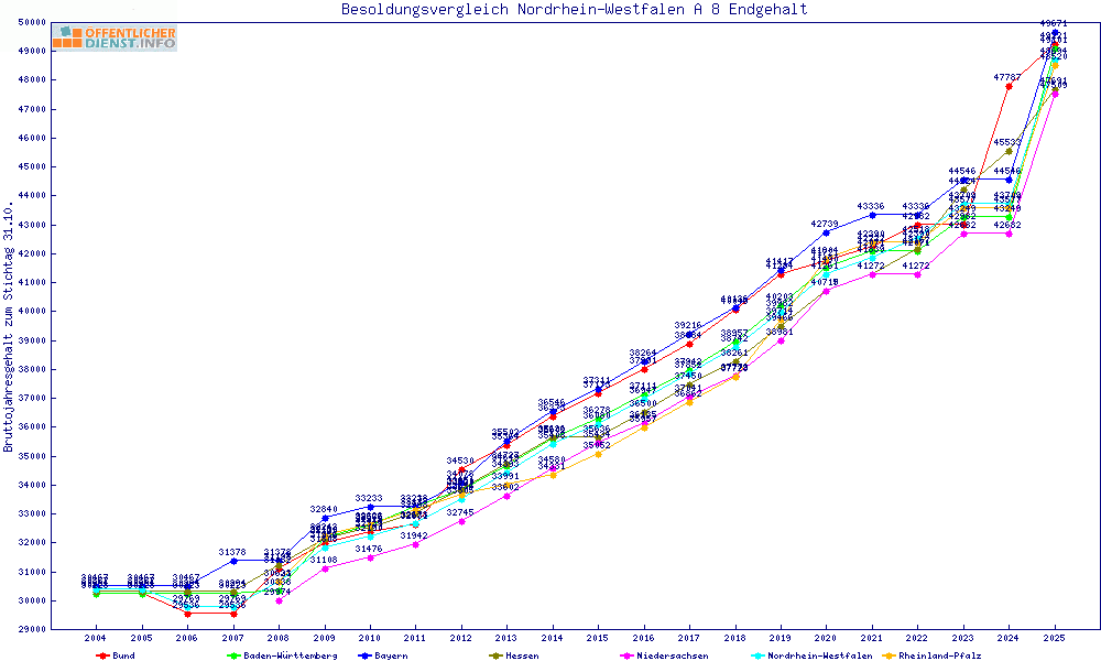 | Besoldungsvergleich A 8 im Jahr 2025 | Endgehalt | |||||||