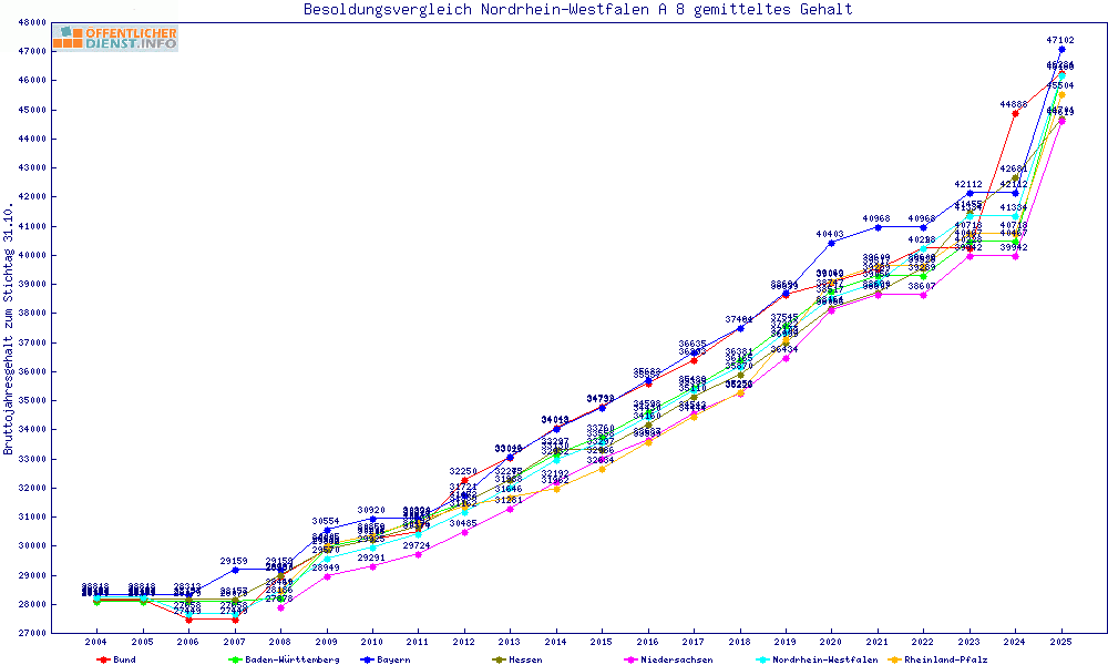 | Besoldungsvergleich A 8 im Jahr 2025 | gemitteltes Gehalt | ||||||