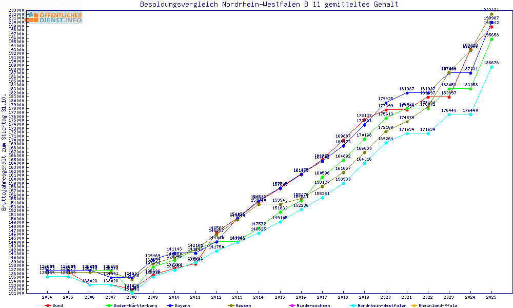 | Besoldungsvergleich B 11 im Jahr 2025 | gemitteltes Gehalt | ||||||