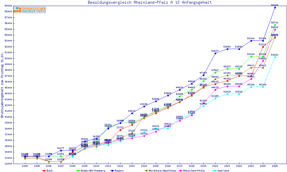 | Besoldungsvergleich A 12 im Jahr 2025 | Anfangsgehalt | ||||||
