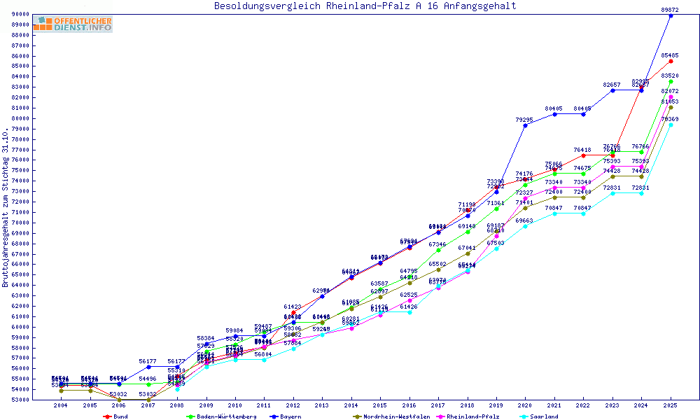 | Besoldungsvergleich A 16 im Jahr 2025 | Anfangsgehalt | ||||||