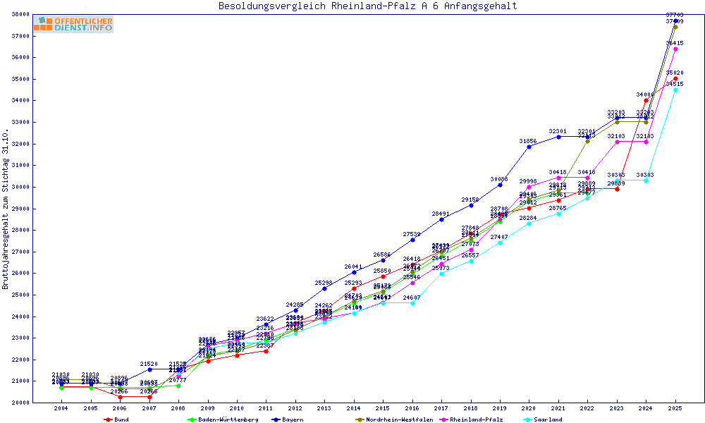 | Rheinland-Pfalz | 36.415 € | +960 € | +2.7% | ||||
