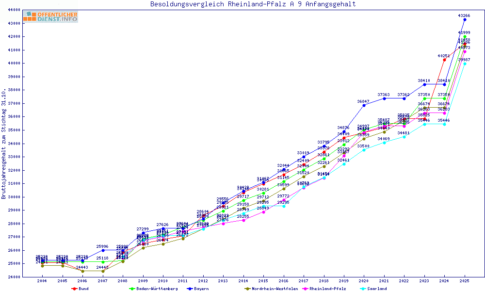 | Besoldungsvergleich A 9 im Jahr 2025 | Anfangsgehalt | ||||||