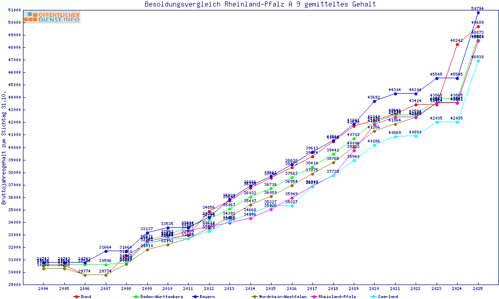 | Rheinland-Pfalz | 51.856 € | +316 € | +0.6% | 26 Jahre | ||||