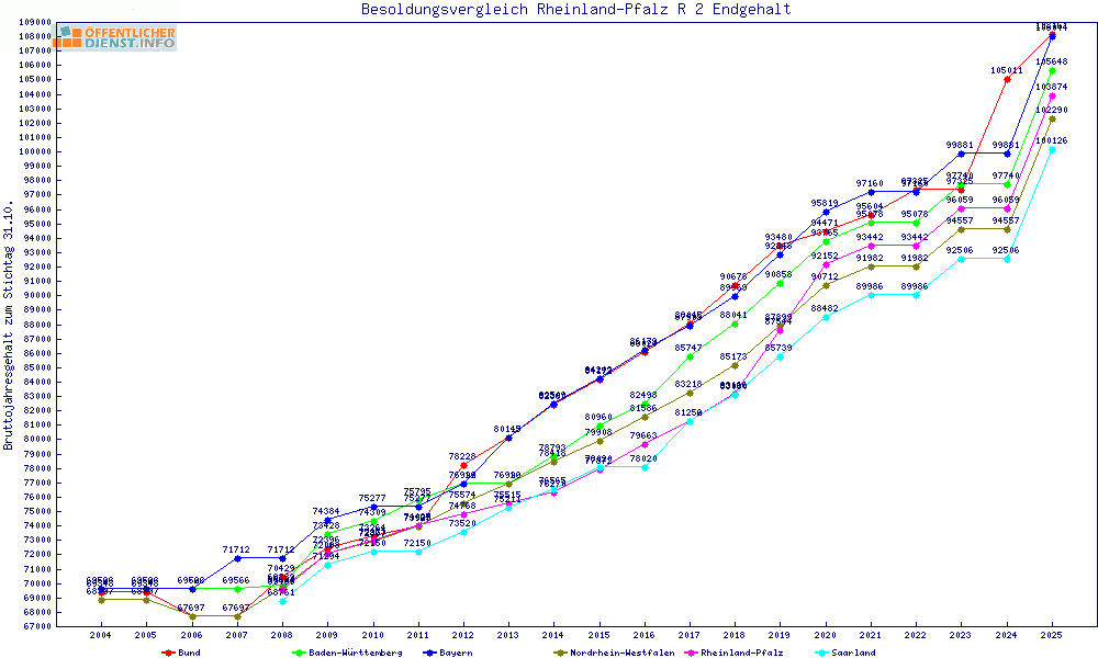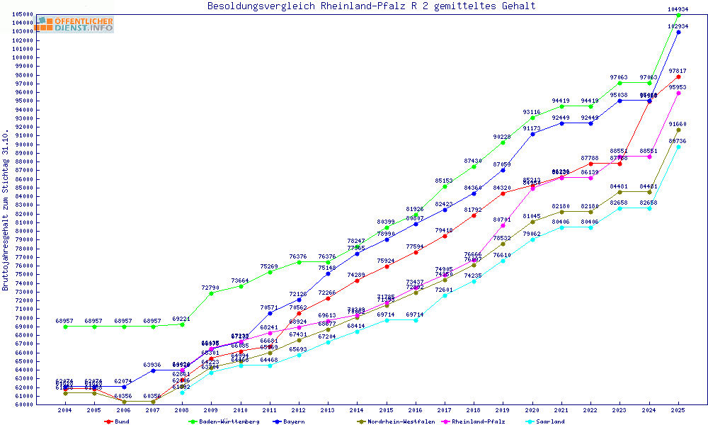 | Besoldungsvergleich R 2 im Jahr 2025 | gemitteltes Gehalt | ||||||