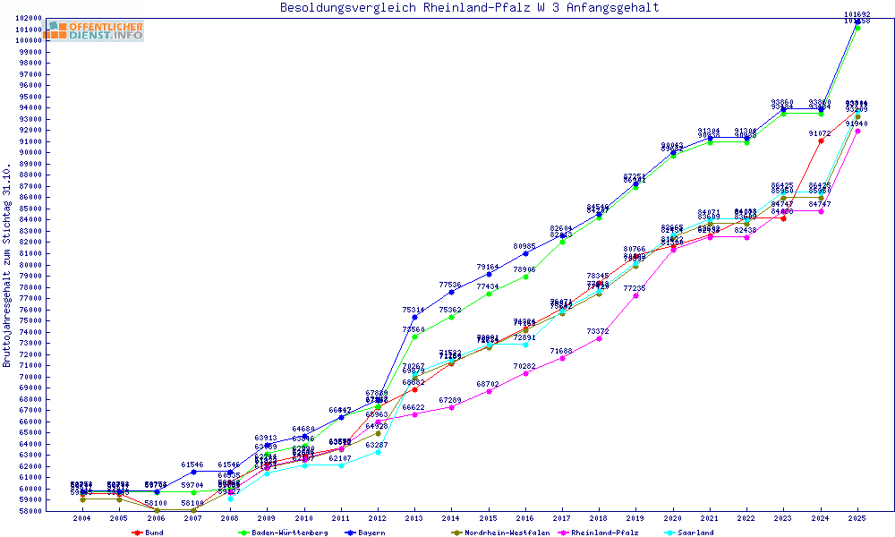 | Besoldungsvergleich W 3 im Jahr 2025 | Anfangsgehalt | ||||||