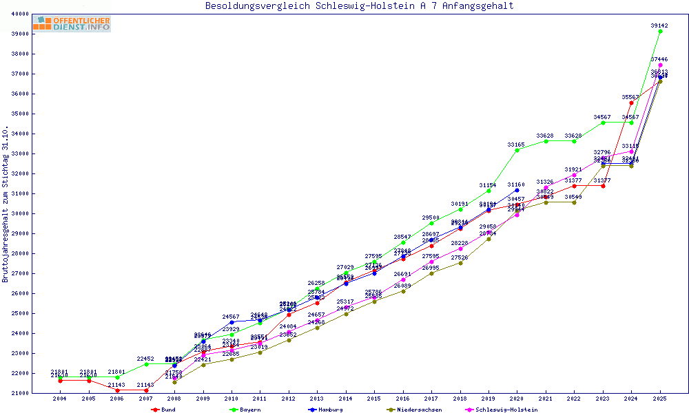 | Besoldungsvergleich A 7 im Jahr 2025 | gemitteltes Gehalt | ||||||