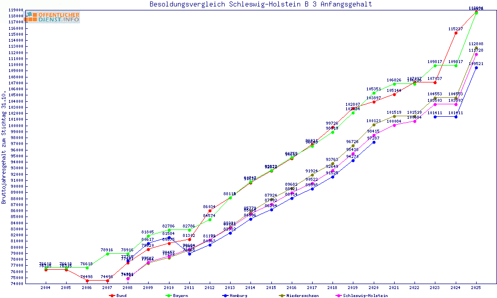 | Besoldungsvergleich B 3 im Jahr 2025 | gemitteltes Gehalt | ||||||