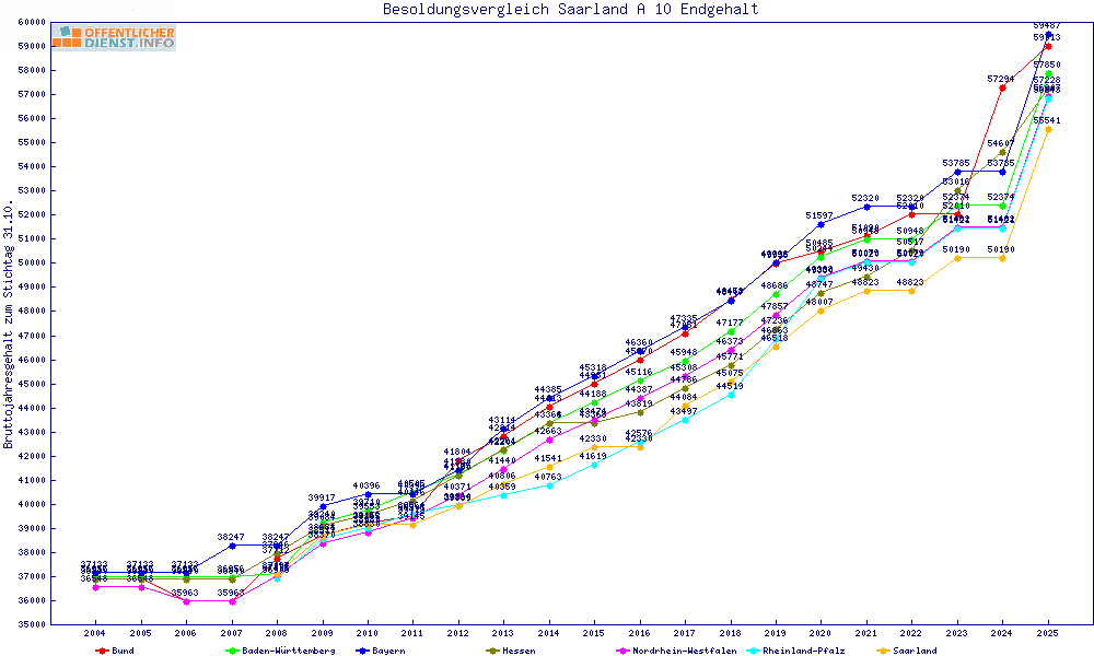 | Besoldungsvergleich A 10 im Jahr 2025 | Endgehalt | |||||||