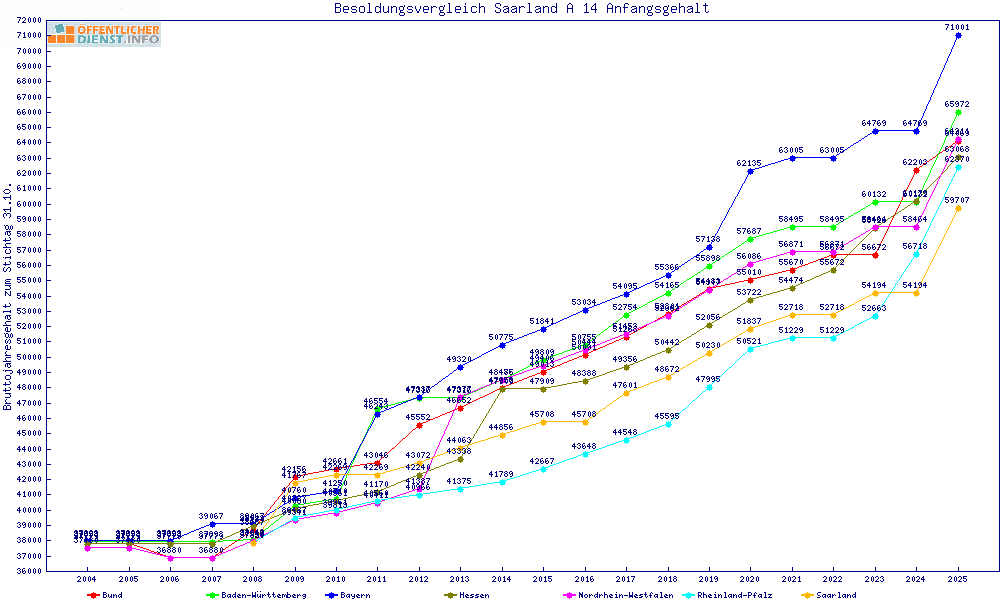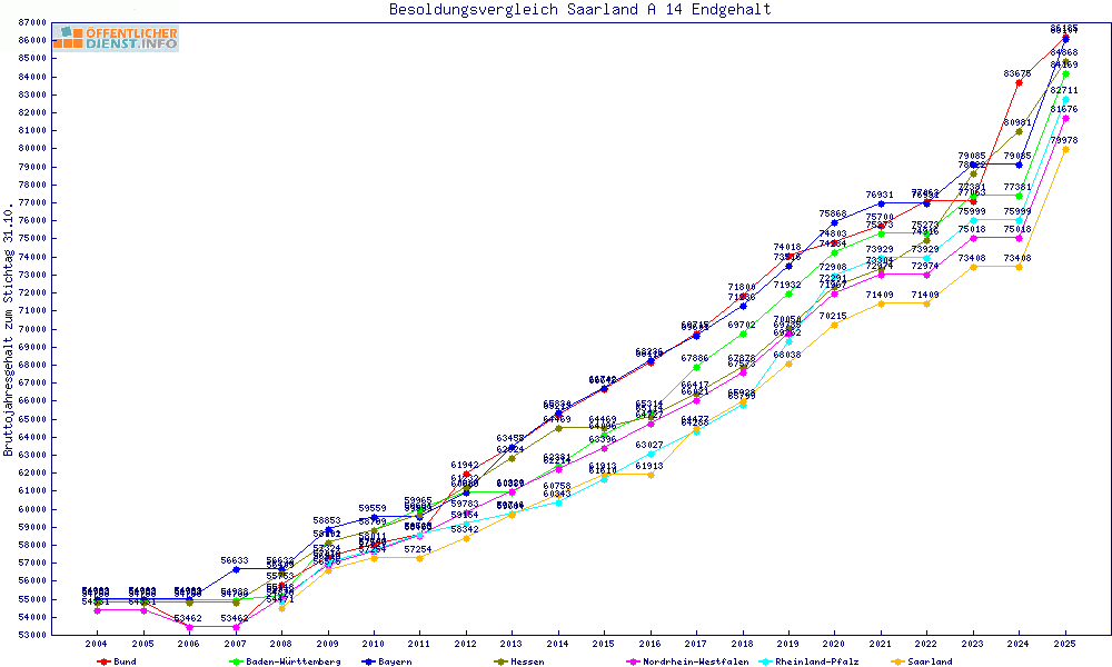 | Besoldungsvergleich A 14 im Jahr 2025 | Anfangsgehalt | ||||||