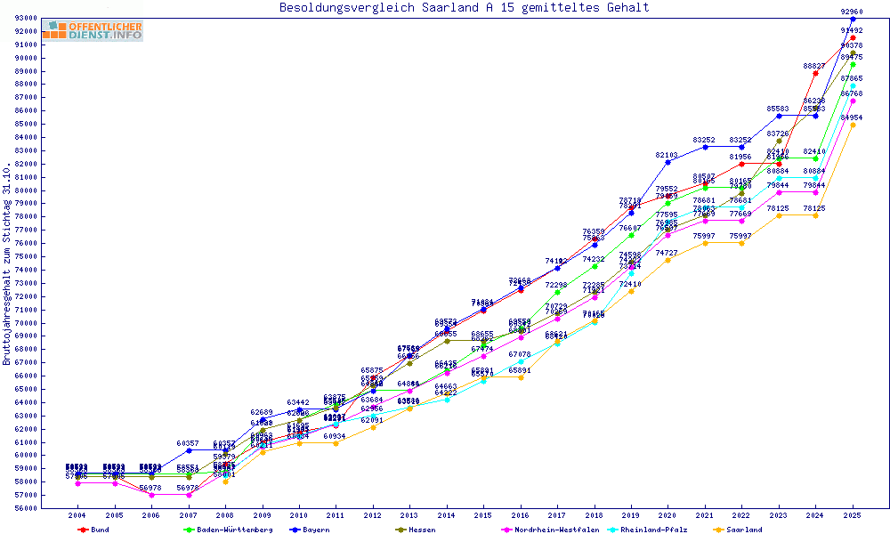 | Besoldungsvergleich A 15 im Jahr 2025 | gemitteltes Gehalt | ||||||