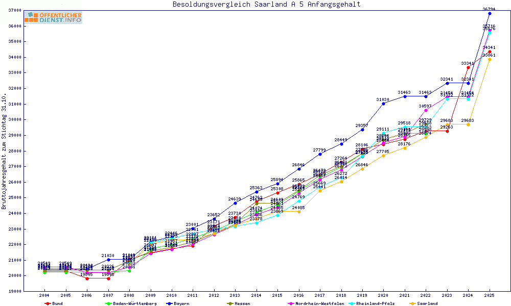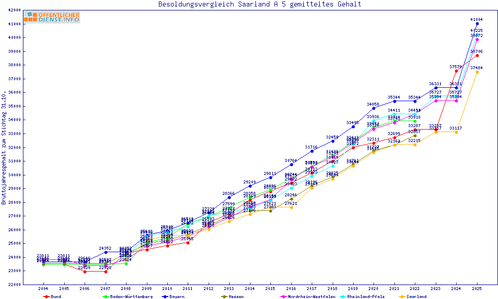 | Besoldungsvergleich A 5 im Jahr 2025 | gemitteltes Gehalt | ||||||