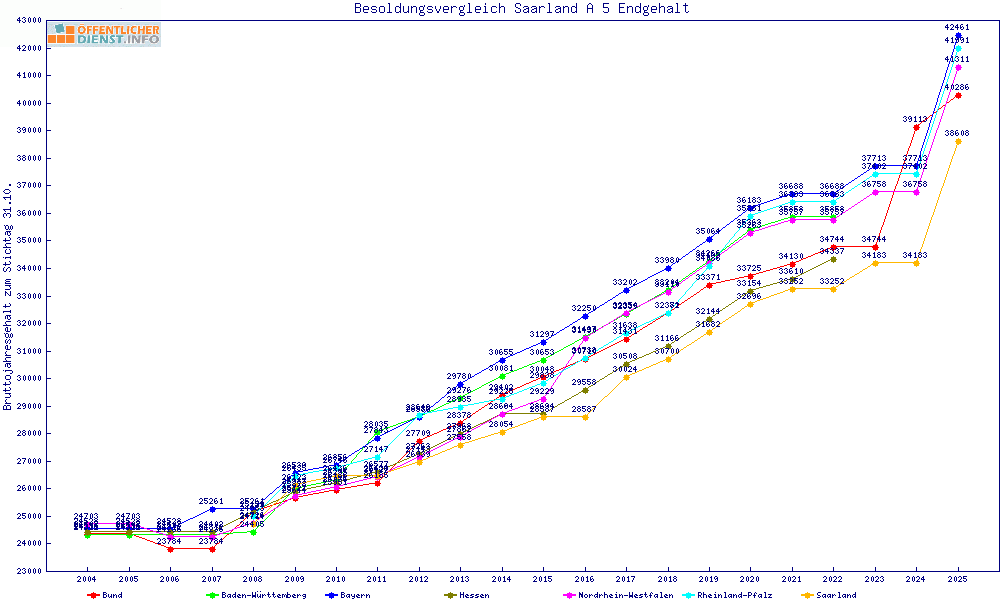 | Besoldungsvergleich A 5 im Jahr 2025 | Endgehalt | |||||||