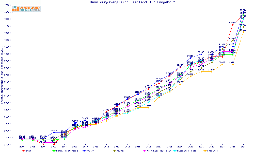 | Besoldungsvergleich A 7 im Jahr 2025 | Endgehalt | |||||||