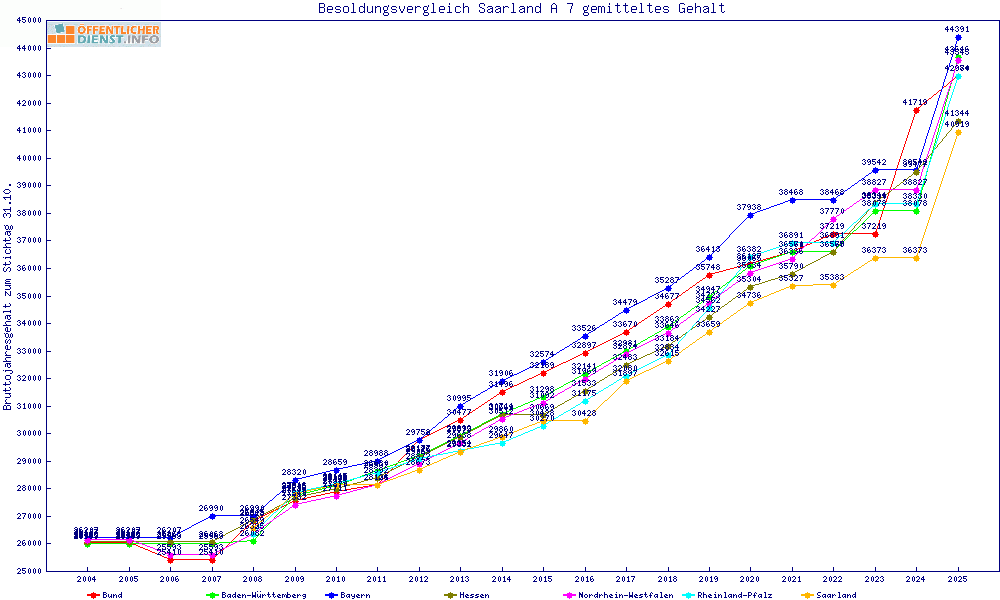 | Besoldungsvergleich A 7 im Jahr 2025 | gemitteltes Gehalt | ||||||