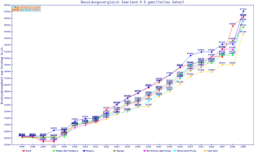 | Besoldungsvergleich A 8 im Jahr 2025 | gemitteltes Gehalt | ||||||