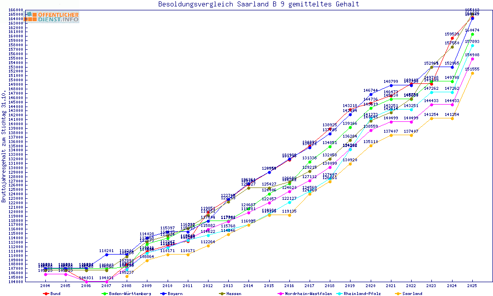 | Besoldungsvergleich B 9 im Jahr 2025 | gemitteltes Gehalt | ||||||