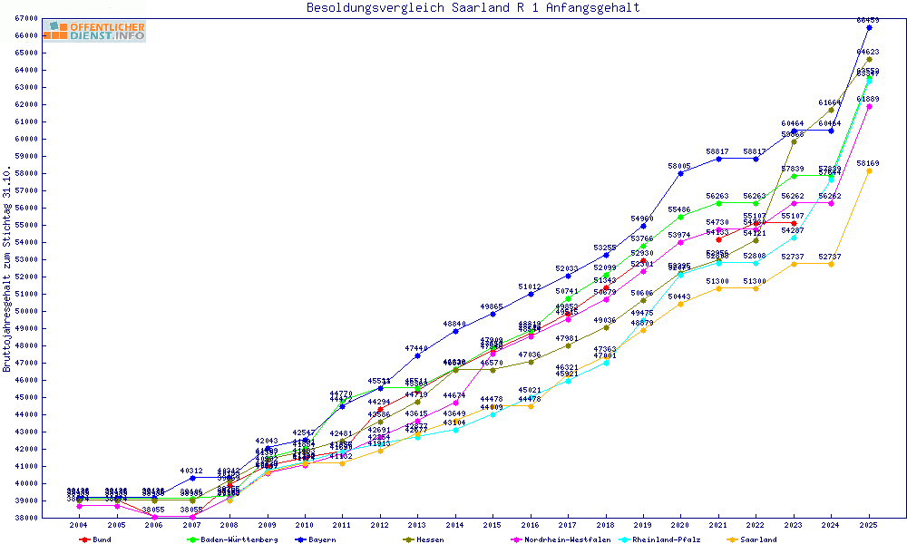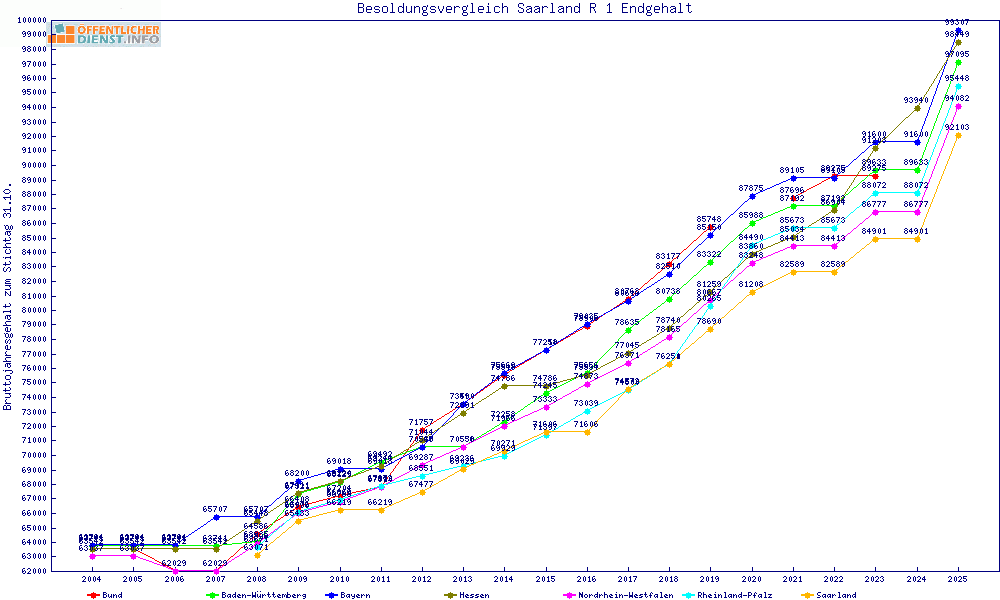 | Besoldungsvergleich R 1 im Jahr 2025 | Anfangsgehalt | ||||||