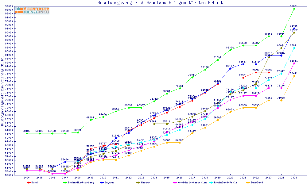 | Saarland | 92.103 € | -3326 € | -3.5% | 32 Jahre | ||||