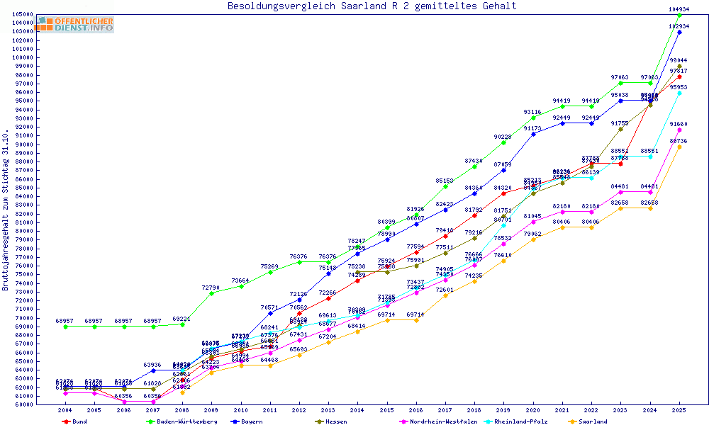 | Besoldungsvergleich R 2 im Jahr 2025 | gemitteltes Gehalt | ||||||
