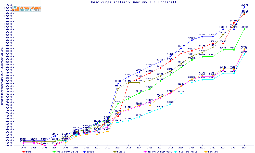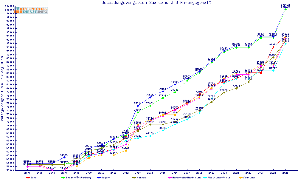 | Besoldungsvergleich W 3 im Jahr 2025 | Anfangsgehalt | ||||||