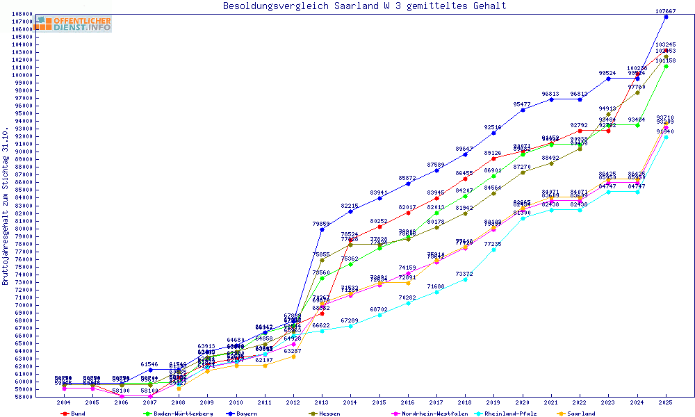 | Bayern | 109.375 € | +15664 € | +16.7% | +12021 € | +12.3% | 12 Jahre | ||