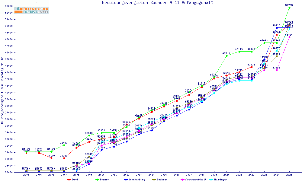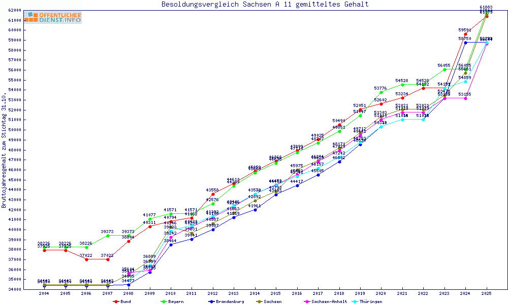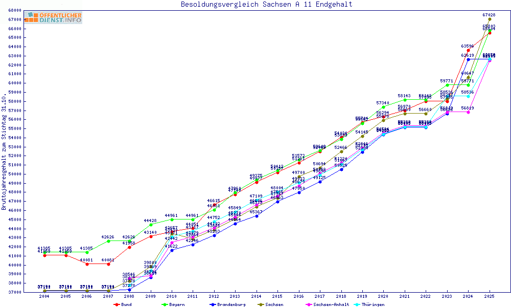 | Sachsen | 67.029 € | +3848 € | +6.1% | 28 Jahre | ||||