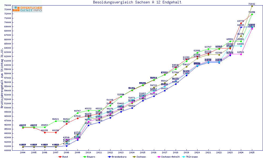 | Sachsen | 73.802 € | +4525 € | +6.5% | 28 Jahre | ||||