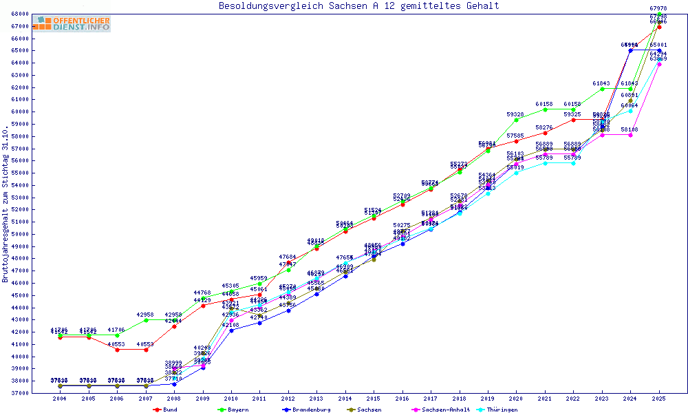 | Besoldungsvergleich A 12 im Jahr 2025 | gemitteltes Gehalt | ||||||