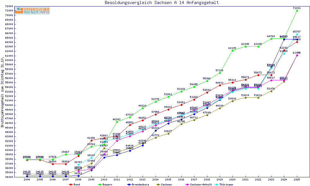 | Besoldungsvergleich A 14 im Jahr 2025 | Anfangsgehalt | ||||||