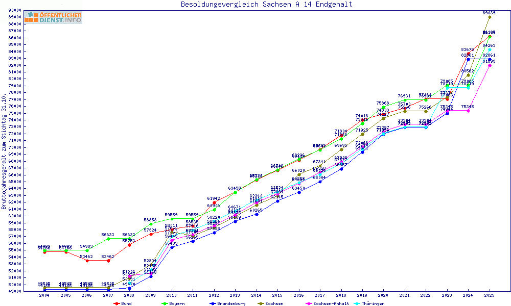 | Sachsen | 89.039 € | +5939 € | +7.1% | 28 Jahre | ||||