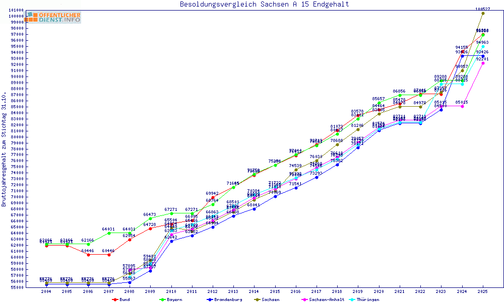 | Besoldungsvergleich A 15 im Jahr 2025 | Anfangsgehalt | ||||||