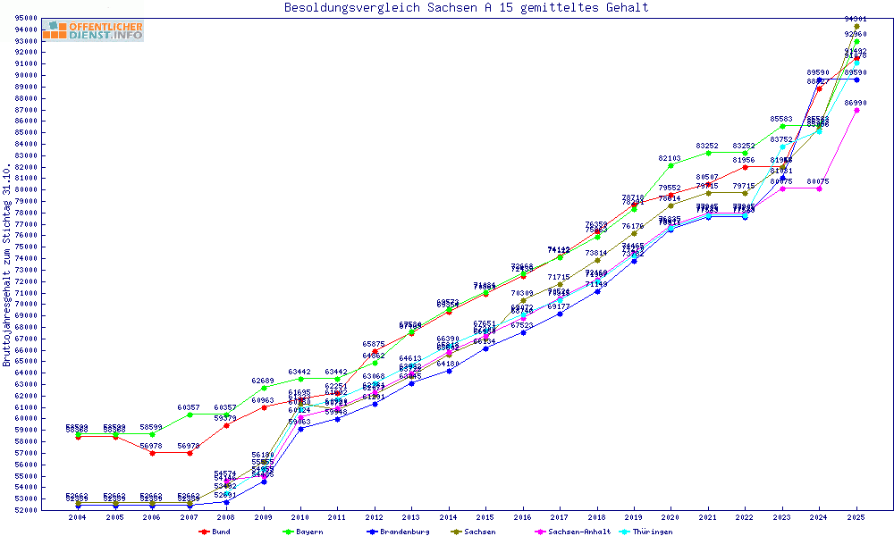 | Besoldungsvergleich A 15 im Jahr 2025 | gemitteltes Gehalt | ||||||