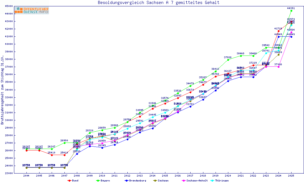 | Besoldungsvergleich A 7 im Jahr 2025 | gemitteltes Gehalt | ||||||