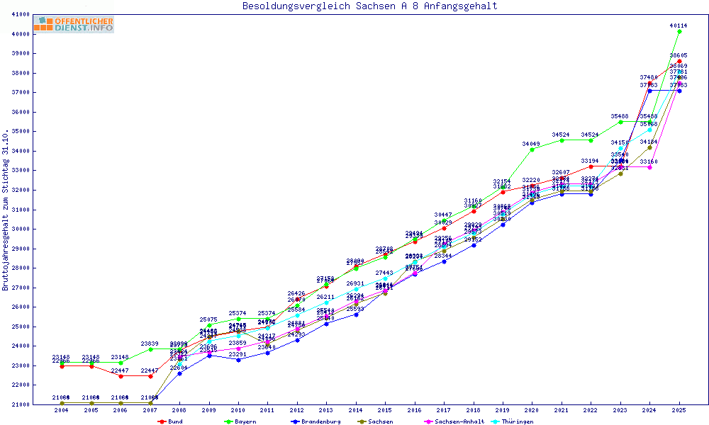 | Besoldungsvergleich A 8 im Jahr 2025 | Anfangsgehalt | ||||||