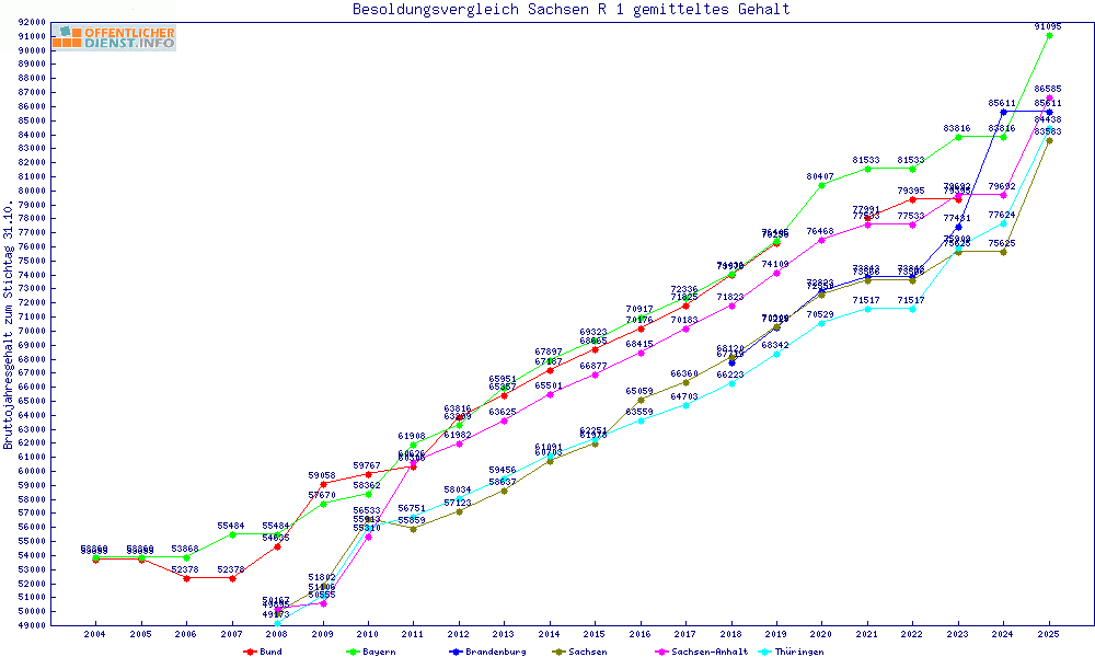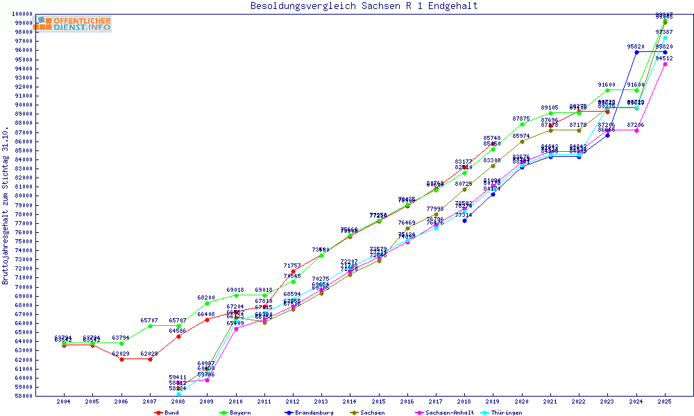 | Sachsen | 99.049 € | +3618 € | +3.8% | 31 Jahre | ||||