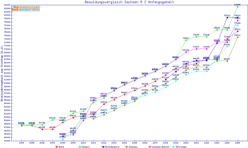 | Besoldungsvergleich R 2 im Jahr 2025 | Anfangsgehalt | ||||||