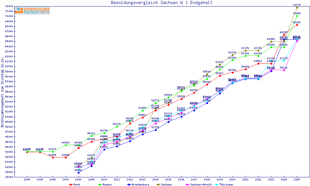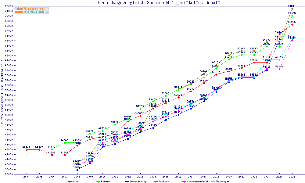 | Sachsen | 71.779 € | +5395 € | +8.1% | 2 Jahre | ||||