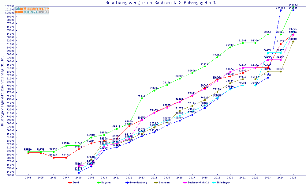 | Besoldungsvergleich W 3 im Jahr 2025 | Anfangsgehalt | ||||||